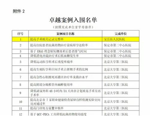 近日,在國(guó)家衛(wèi)生健康委醫(yī)院管理研究所組織開展的醫(yī)療質(zhì)量安全改進(jìn)暨《全面提升醫(yī)療質(zhì)量行動(dòng)計(jì)劃》落實(shí)案例/經(jīng)驗(yàn)征集活動(dòng)中,安岳縣人民醫(yī)院參評(píng)的《提高手術(shù)相關(guān)記錄完整率》案例入圍“卓越案例”。