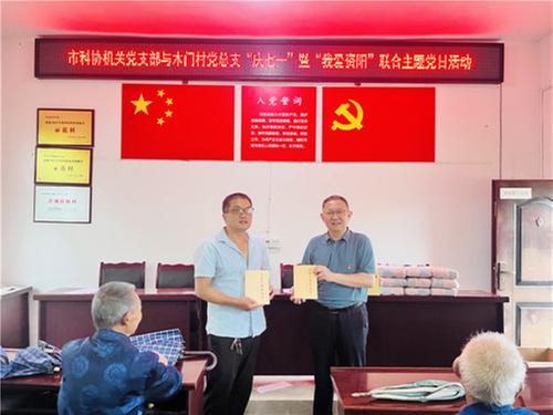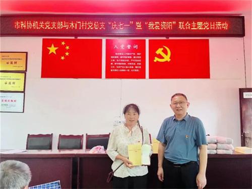 為慶祝中國(guó)共產(chǎn)黨成立102周年,深入宣傳貫徹省委十二屆三次全會(huì)及市委五屆七次全會(huì)精神,6月29日,資陽(yáng)市科協(xié)黨組成員、副主席劉小彬帶隊(duì)前往黨支部結(jié)對(duì)共建村——安岳縣臥佛鎮(zhèn)木門村開(kāi)展“慶七一”暨“我愛(ài)資陽(yáng)”聯(lián)合主題黨日活動(dòng),為木門村黨總支30余名黨員同志宣傳講解省委、市委的新精神和新政策,并送去關(guān)懷與溫暖。