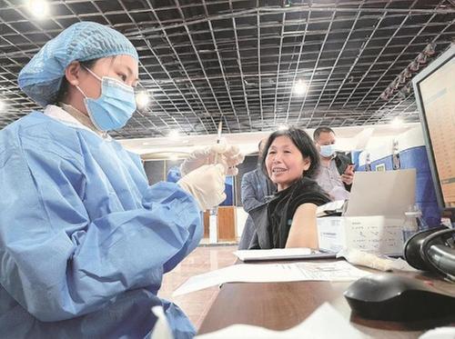 近日,在內(nèi)江市東興區(qū)東興社區(qū)衛(wèi)生服務(wù)中心,醫(yī)務(wù)人員正在為市民接種新冠疫苗。