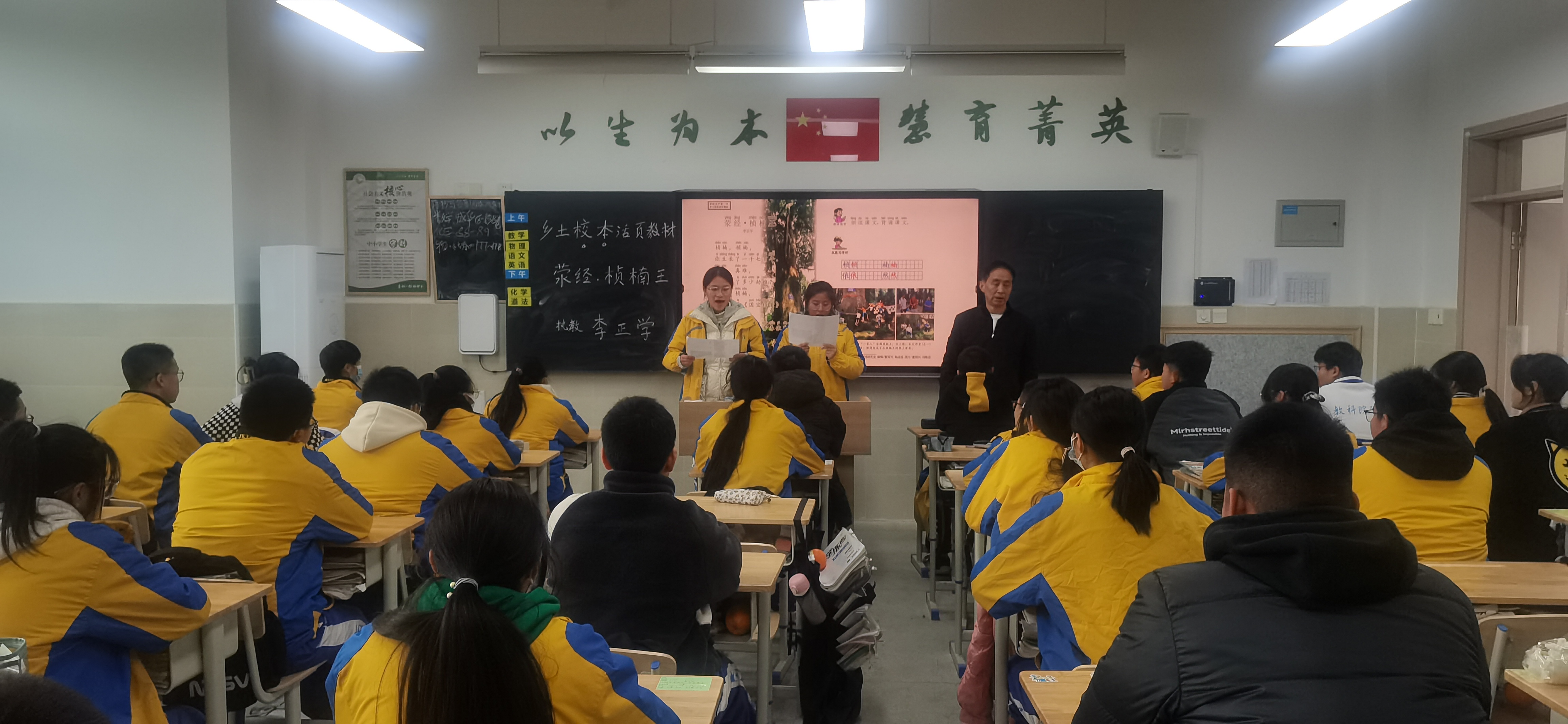 天府新區(qū)教科院附中校長(zhǎng)楊永紅、該校九年級(jí)八班班主任商紅陽(yáng)、語文教師楊茂參與了鄉(xiāng)土校本活頁(yè)教材《滎經(jīng)·楨楠王》進(jìn)課堂活動(dòng)。