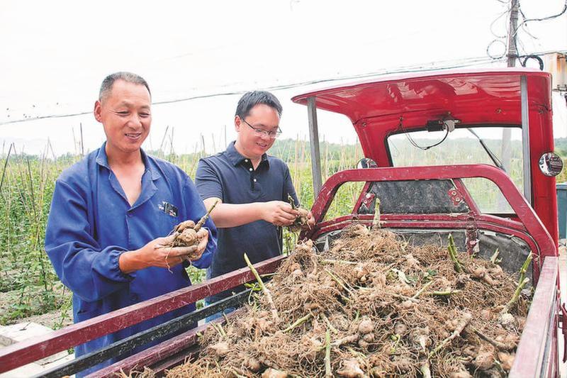 附子是我國(guó)名貴中藥材之一,江油自古被公認(rèn)為附子的道地產(chǎn)區(qū)。作為邀月村附子種植大戶,王洪今年種植的30余畝附子也迎來(lái)大豐收。采收現(xiàn)場(chǎng),他穿著一身藍(lán)色長(zhǎng)衫,干勁十足,“今年產(chǎn)量高的1畝田僅附子的收入就可以達(dá)到3.5萬(wàn)至3.6萬(wàn)元。”
