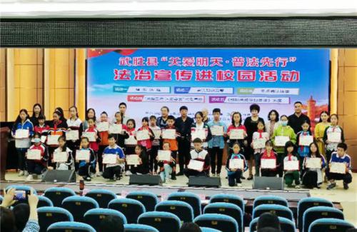 9月24日,廣安市武勝縣“關(guān)愛明天 普法先行”法治宣傳進(jìn)校園活動在武勝沿口初中舉行。縣關(guān)工委、縣依法治縣辦、縣司法局、縣教科體局等部門負(fù)責(zé)人,23個鄉(xiāng)鎮(zhèn)分管政法工作負(fù)責(zé)人和關(guān)工辦負(fù)責(zé)人,法治征文獲獎學(xué)生以及指導(dǎo)老師參加了此次活動。