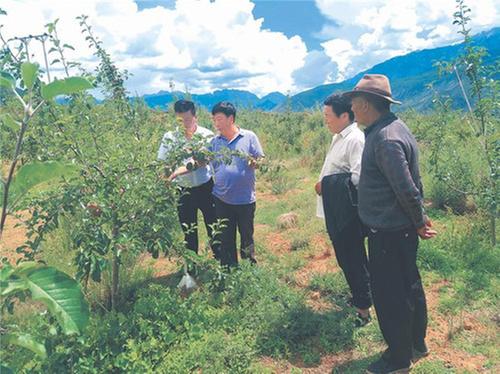 劉成忠在香巴拉鎮(zhèn)登仲村指導(dǎo)蘋果蟲害防治