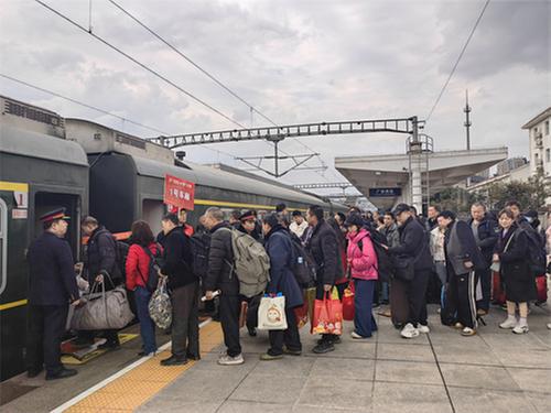 下午2時30分左右,大巴車順利抵達廣安南站。在工作人員的引導(dǎo)下,農(nóng)民工們有序進站、安檢、候車。下午3時07分,隨著K488次列車緩緩駛離站臺,46名農(nóng)民工踏上了溫暖的返崗旅途。據(jù)悉,另有17名鄰水籍農(nóng)民工也于當(dāng)天上午從前鋒站乘坐免費返崗專列前往福州返崗復(fù)工。