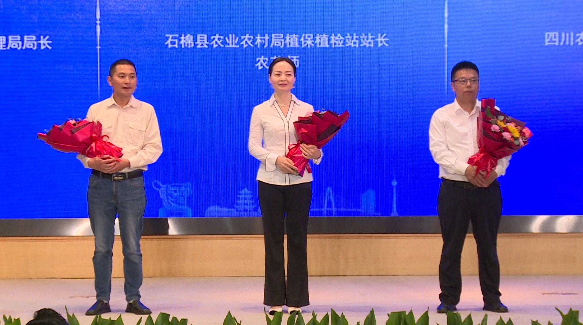 舞臺上,站在趙聯(lián)軍右手邊的是石棉縣農(nóng)業(yè)農(nóng)村局植保植檢站站長、農(nóng)藝師蔣凌萍。與趙聯(lián)軍用腳步丈量青山不同,她把美好青春年華都獻(xiàn)給了美麗鄉(xiāng)村。