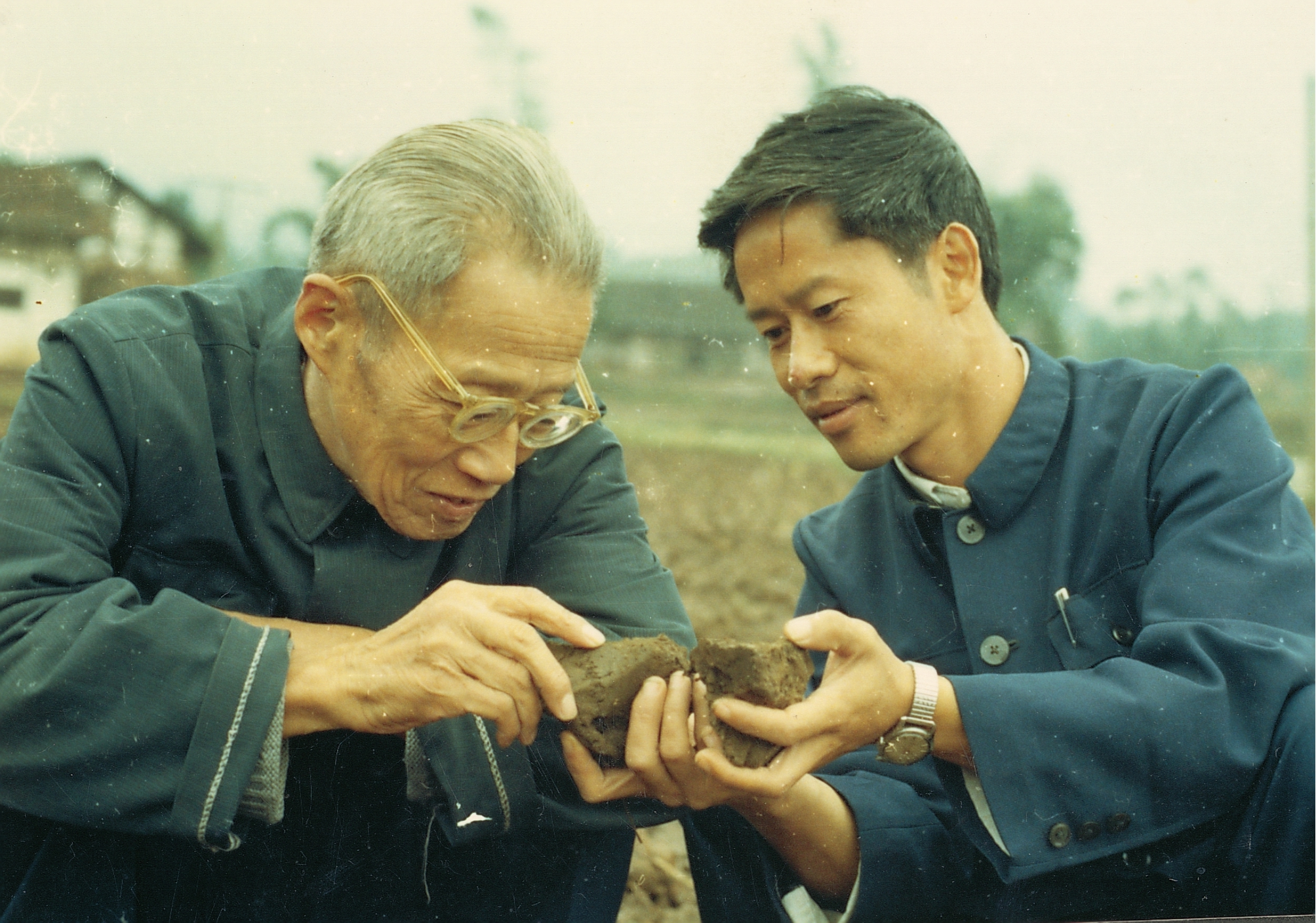 侯光炯在長寧指導(dǎo)農(nóng)技人員觀察土壤結(jié)構(gòu) (資料圖)