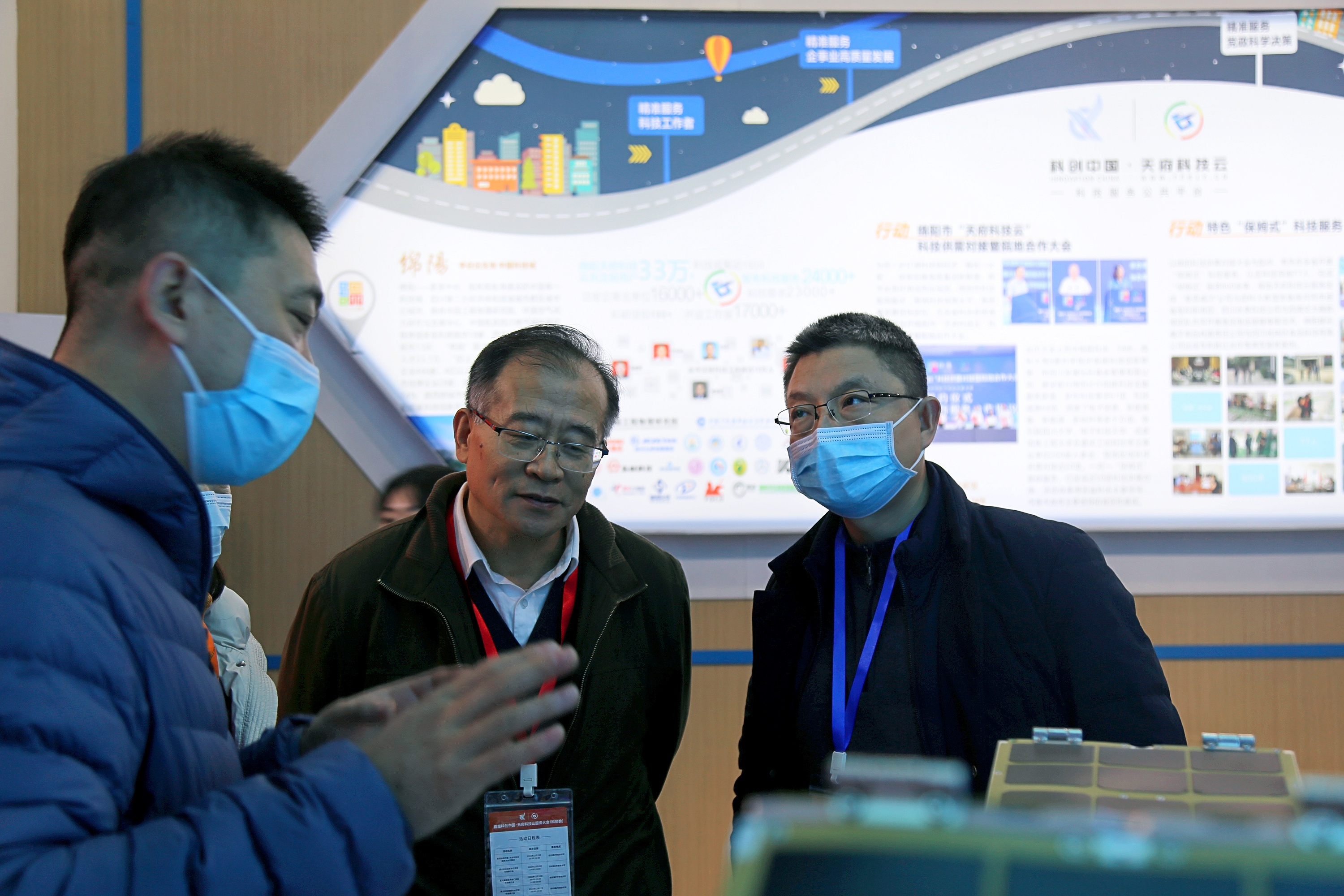 范國(guó)濱(中)在首屆“科創(chuàng)會(huì)”上了解企業(yè)科技成果